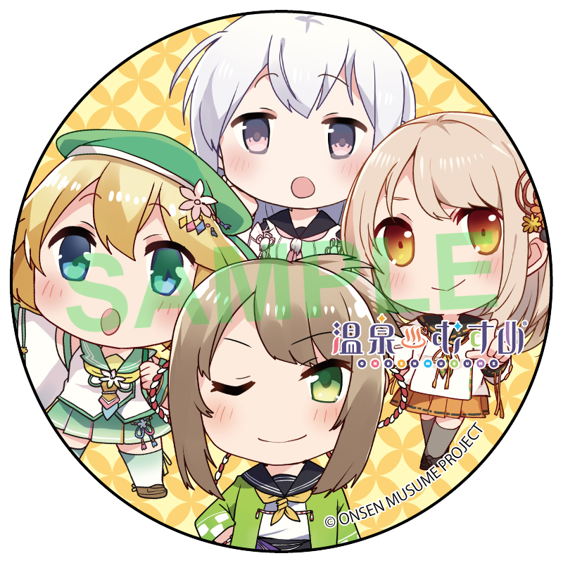 ・缶バッジ(4キャラ集合イラスト2種(立ち絵またはSD)のうち、ランダムで1種)